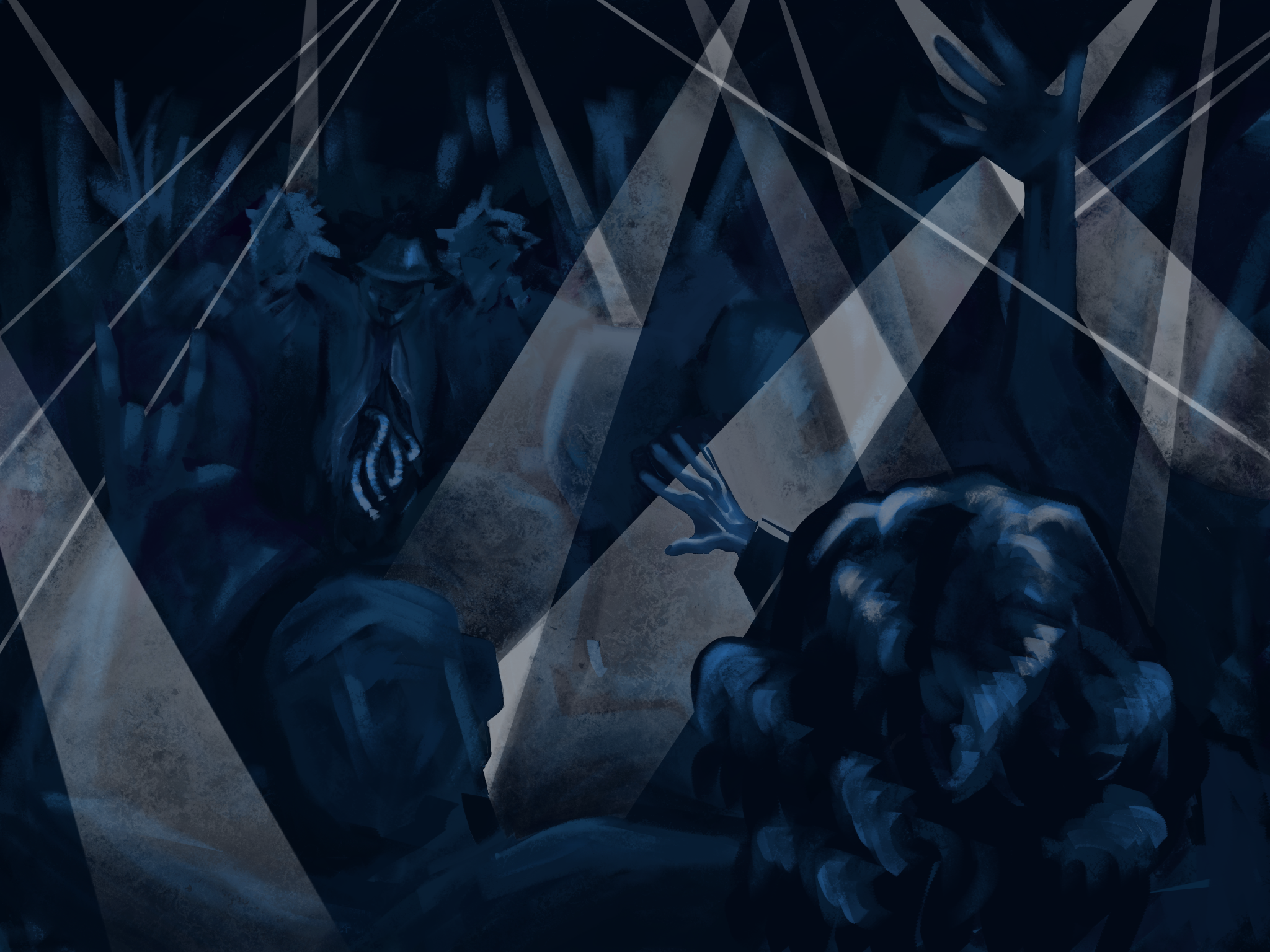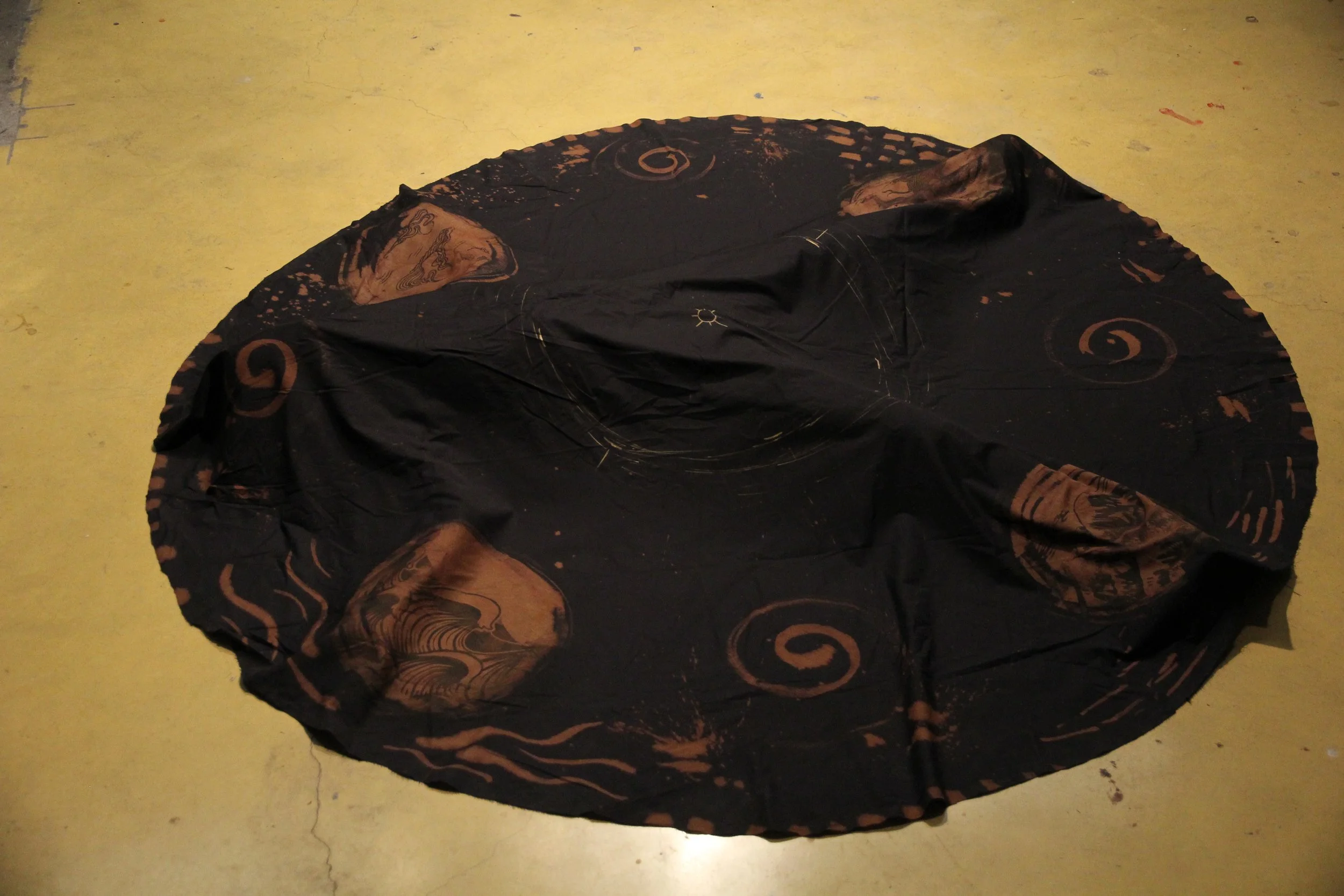 SECOND - viewing the charcoal on distressed mylar handprints, the viewer is presented with low-quality headphones as a means of creating distance and distortion from the second audio mixture.