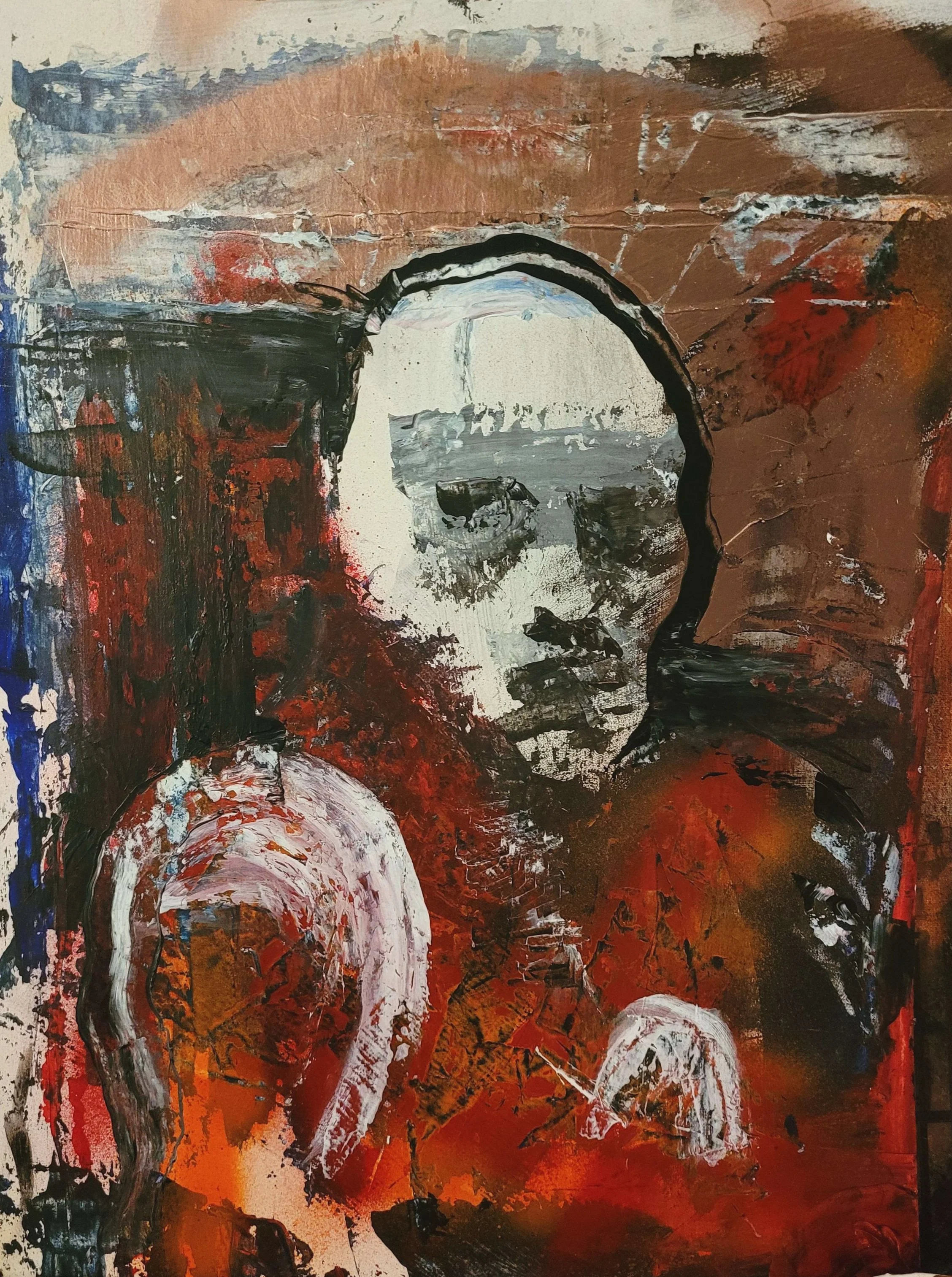 SELF, ACRYLIC & SPRAY PAINT ON CARDBOARD